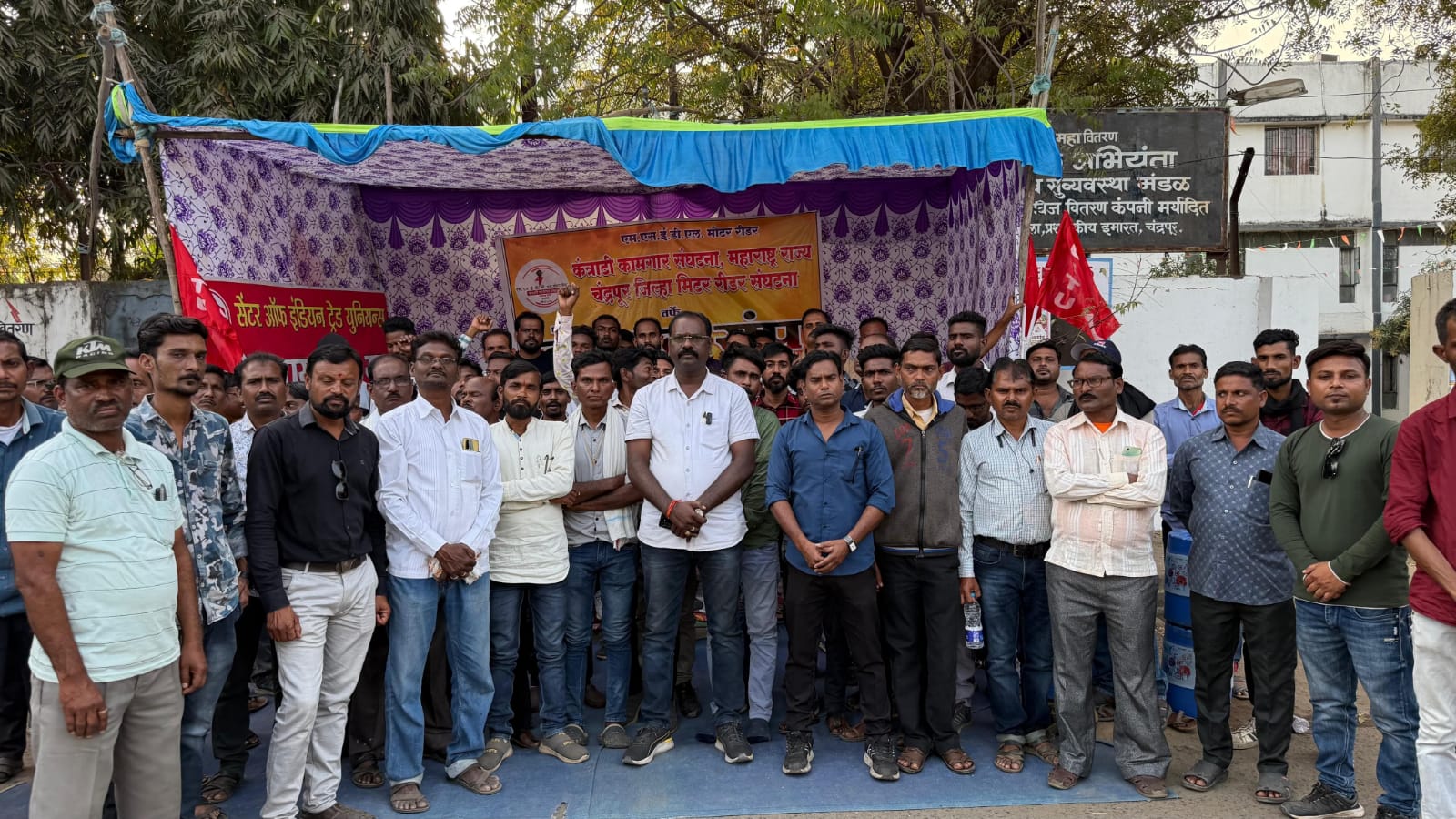 चंद्रपूर : जिल्ह्यातील एम.एस.ई.डी. एल मिटर रीडर कंत्राटी कामगार संघटनेच्या वतीने महाराष्ट्र राज्य वीज वितरण कार्यलया समोर आज दिनांक 01 फेब्रुवारी 2025 पासून महावितरण तर्फे स्मार्ट मिटर लावल्या नंतर ही रीडर कामगारांनावयाच्या 60 वर्षी पर्यंत नियमित रोजगार देण्यात यावा किमान वेतन देण्यात यावे यामागणी साठी बेमुदत आंदोलनाला सुरुवात करण्यात आली.