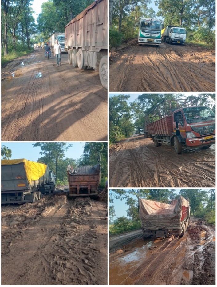 त्यामुळे रस्त्यावर मोठमोठे खड्डे पडले आहेत या दिनांक ४ व 13 सप्टेंबर सुद्धा याच ठिकाणी दोन ट्रक फसले होती त्यामुळे वाहतूक पूर्णपणे ठप्प पडली होती धानोरा छत्तीसगड राष्ट्रीय महामार्गावर ट्रक फसण्याचा सिलसिला सुरू आहे.