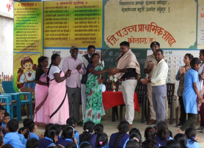 सेवानिवृत जेष्ठ शिक्षक नरेश मडावी यांनी जिल्हा परिषद उच्च प्राथमिक शाळा कोलारा येथे पूर्ण बारा वर्षे सेवा दिली.31 ला सेवानिवृत झाले.त्यानिमीत्याने कोलारा ग्राम पंचायत व शाळा व्यवस्थापन समिती पदाधिकाऱ्यांनी नरेश मडावी यांना शॉल व श्रिफळ देऊन सन्मानित करण्यात आले व त्यांना सहृदय निरोप देण्यात आला.