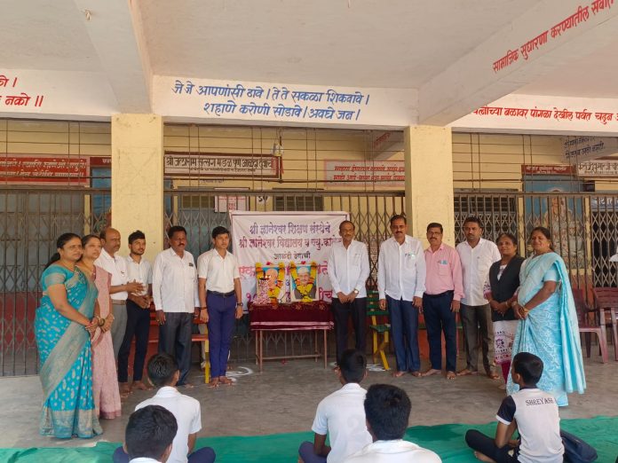 यावेळी श्री ज्ञानेश्वर शिक्षण संस्थेचे सचिव अजित वडगावकर विद्यालयाचे प्राचार्य दीपक मुंगसे, मुख्याध्यापक प्रदीप काळे, पर्यवेक्षक किसन राठोड, प्रकाश भागवत, सुदाम मोहरे, योगेश मठपती, अनुजायिनी राजहंस, शारदा साबळे, लता बिरदवडे, वैशाली शिर्के, उमेश कुलकर्णी, राजू सोनवणे, सावळाराम देशमुख आदी शिक्षक-शिक्षकेतर कर्मचारी व विद्यार्थी मोठ्या संख्येने उपस्थित होते.