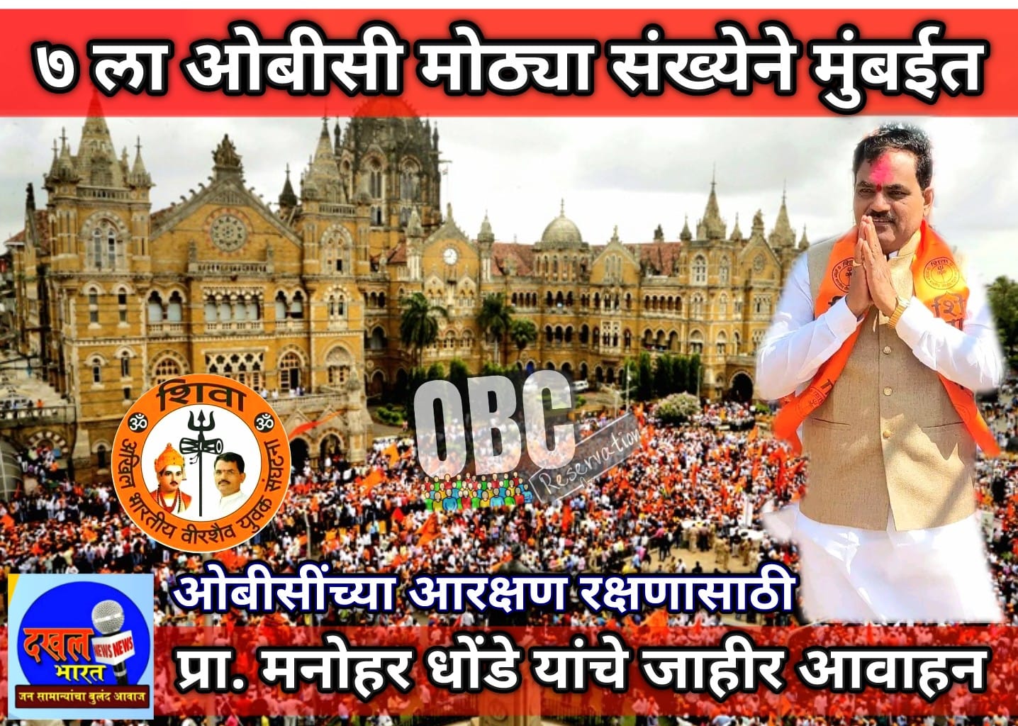 या मागण्यांसाठी येत्या ०७ ऑक्टोंबरला मुंबई आझाद मैदानावर एकदिवसीय धरणे आंदोलनाला जास्तीत जास्त ओबीसींनी आपल्या न्याय हक्कासाठी आपण एकत्र येऊन मुंबई गाठावी असे आवाहन राष्ट्रीय ओबीसी आरक्षण हक्क परिषद व शिवा संघटनेचे राष्ट्रीय अध्यक्ष प्रा.मनोहर धोंडे, उपाध्यक्ष माजी आमदार शिवशरण अण्णा बिराजदार, सरचिटणीस उमाकांतआप्पा शेटे, रूपेश होनराव, धन्यकुमार शिवणकर, उपाध्यक्ष अभय कल्लावार, दत्ताप्पा खंकरे, वाय. बी. सोनटक्के, महाराष्ट्र राज्य अध्यक्ष मनिष पंधाडे, उपाध्यक्ष भिमाप्पा खांदे, सुनिल वाडकर, शैलेश जक्कापुरे यांनी केले आहे.