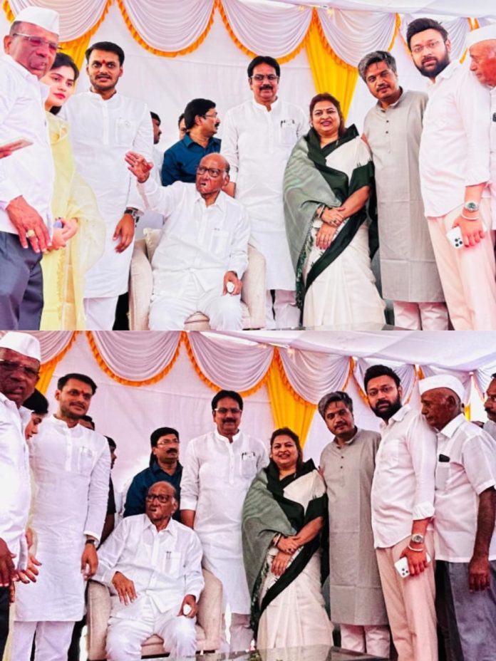 बारामती येथील गोविंद बागेत माजी मंत्री व इंदापूर विधानसभा मतदारसंघातील राष्ट्रवादी काँग्रेस पार्टी शरदचंद्र पवार पक्षाचे उमेदवार हर्षवर्धन पाटील यांनी पक्षाचे राष्ट्रीय अध्यक्ष खा. शरदचंद्रजी पवार यांची सहकुटुंब भेट घेऊन दीपावली पाडव्यानिमित्त शनिवारी (दि.2) शुभेच्छा दिल्या व आशिर्वाद घेतले. तसेच या भेटीत पवार व पाटील कुटुंबियातील सदस्यांनी दिवाळीनिमित्त एकमेकांना शुभेच्छा दिल्या.