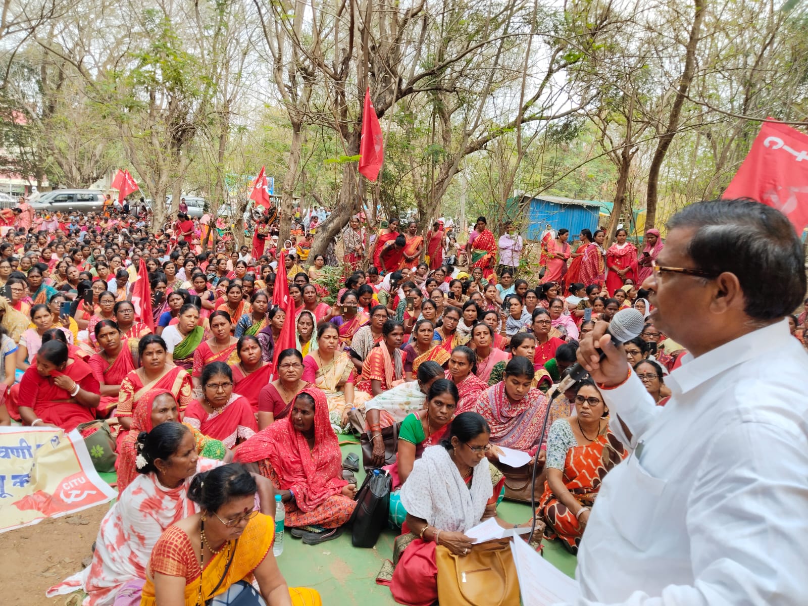 या आंदोलनाला कॉ. रमेशचंद्र दहिवळे, कॉ.अमोल मारकवार,कॉ.राजेश पिंजरकर ,शारदा लेनगुरे,ललीता चौधरी, विमल गावडे, सुशिला कर्णैवार, संध्या खनके, सुरेखा तितरे, प्रणिता लांडगे, शोभा राहुलकर, वंदना जिवणे, सुनंदा बावणे, विठाबाई भट, माया शेडमाके, मायाबाई नैनुरवार, ललीता केदार, वर्षी तिजारे यासह जिल्ह्यातील 1200 अंगणवाडी सेविका व मदतनीस उपस्थित होते.