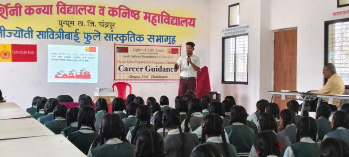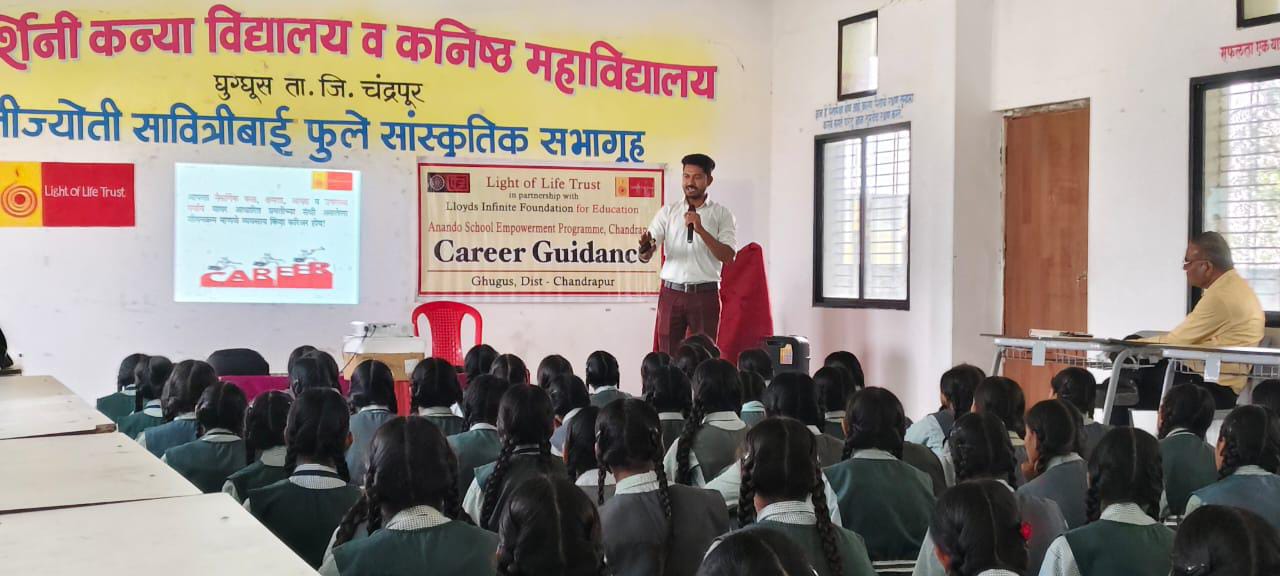 चंद्रपूर : लॉयड्स इन्फिनाईट फाउंडेशन व लाईट ऑफ लाईफ ट्रस्टच्या वतीने चंद्रपूर मधील ३ शाळांमध्ये “आंनदो शाळा सक्षमीकरण कार्यक्रमा” अंतर्गत दहावीच्या विद्यार्थ्यांसाठी करिअर मार्गदर्शन कार्यक्रमांचे आयोजन करण्यात आले. प्रियदर्शनी कन्या विद्यालय घुग्घुस, इंदिरा गांधी विद्यालय पडोली आणि न्यू इंग्लिश हायस्कूल पांढरकवडा येथे झालेल्या या सत्रांना विद्यार्थ्यांचा उत्साहपूर्ण प्रतिसाद मिळाला.