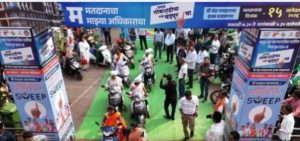 महानगरपालिका निवडणुकीत अधिकाधिक मतदारांनी मतदान प्रक्रियेत सहभागी व्हावे, यासाठी स्वीप अंतर्गत विविध उपक्रम राबविण्यात येत आहेत. त्यामध्ये विविध माध्यमांतील प्रसिद्धी, नागरिकांशी थेट संवाद, पथनाट्य, रांगोळी, चित्रकला, निबंध, प्रश्नमंजुषा, रील्स, सेल्फी आदी स्पर्धा व उपक्रमांचा समावेश आहे. त्याचाच एक भाग म्हणून आज बाईक रॅलीचे आयोजन करण्यात आले होते.