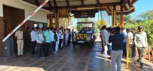 यावेळी मंचावर प्रामुख्याने वनविभागाचे सीसीएफ डॉ. जितेंद्र रामगावकर सर, भारताचे सर्वश्रेष्ठ हृदय शल्य चिकित्सक तथा समाजसेवक डॉ. रमाकांत पांडा सर (मुंबई), डीएफओ (कोअर) श्री. आनंद रेड्डी सर, डीएफओ (बफर) सौ. पियुषा जगताप मॅडम, भाजपाचे तालुकाध्यक्ष राजू पाटील झाडे, भाजपा ज्येष्ठ नेते प्रकाश वाकडे, सरपंच्या ग्रा. पं. कोलारा सौ. शोभाताई कोयचाडे, उपसरपंच ग्रा. पं. कोलारा सचिन डाहूले व अन्य मान्यवर उपस्थित होते.