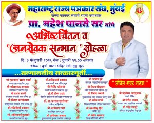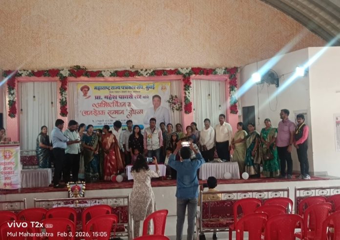 महाराष्ट्र राज्य पत्रकार संघ मुंबईच्या चंद्रपूर जिल्हा शाखेतर्फे मूल येथील माॅ दुर्गा माता सभागृहात आयोजित जनसेवक सन्मान सोहळा २०२६ व प्रा.महेश पानसे यांचा अनिष्टचिंतन सोहळा उत्साहात संपन्न झाला.