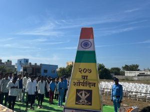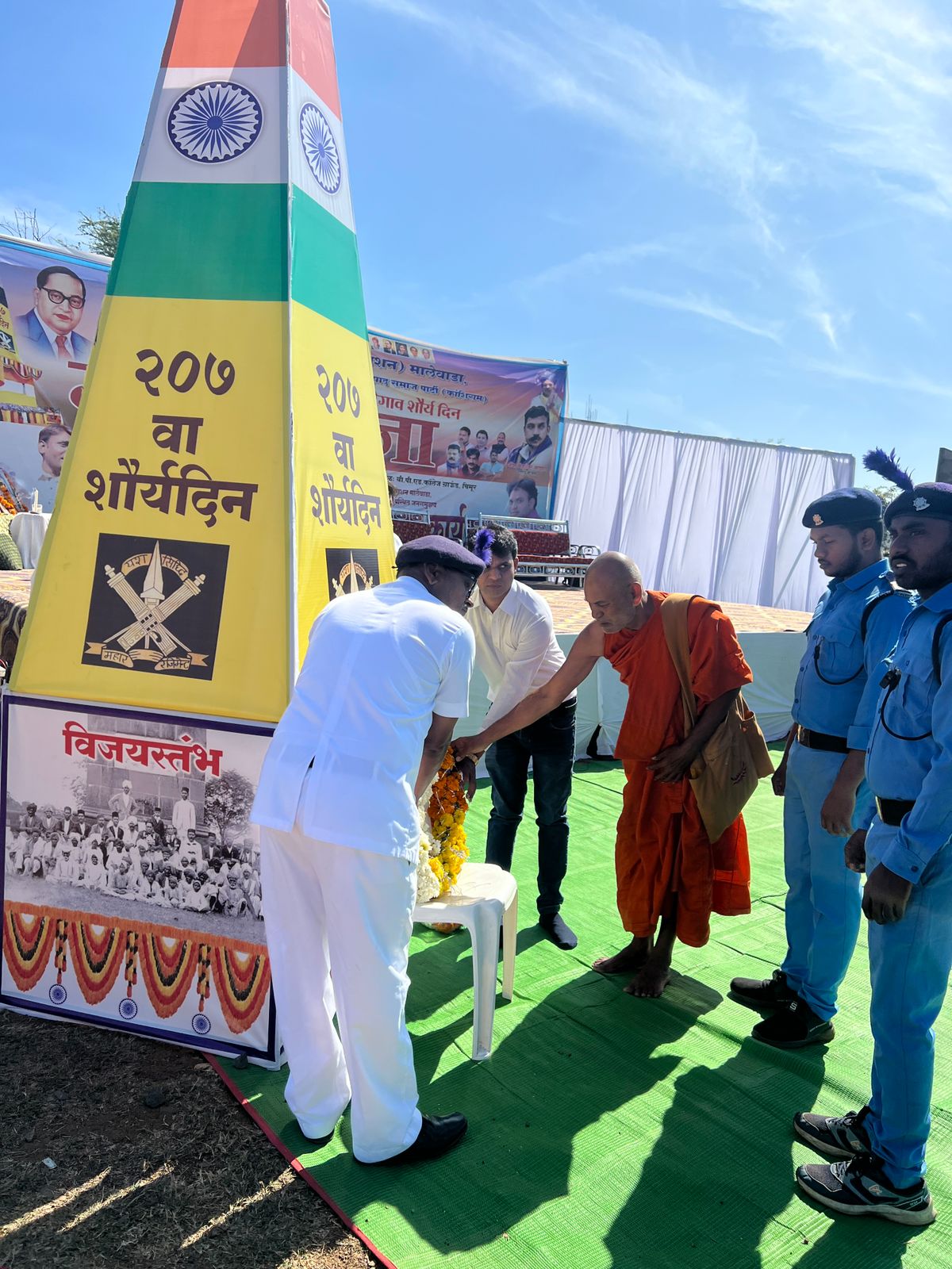 यावेळी प्रतिकात्मक भव्य विजयस्तंभाला समता सैनीक दलाने सलामी देत मानवंदना दिली.