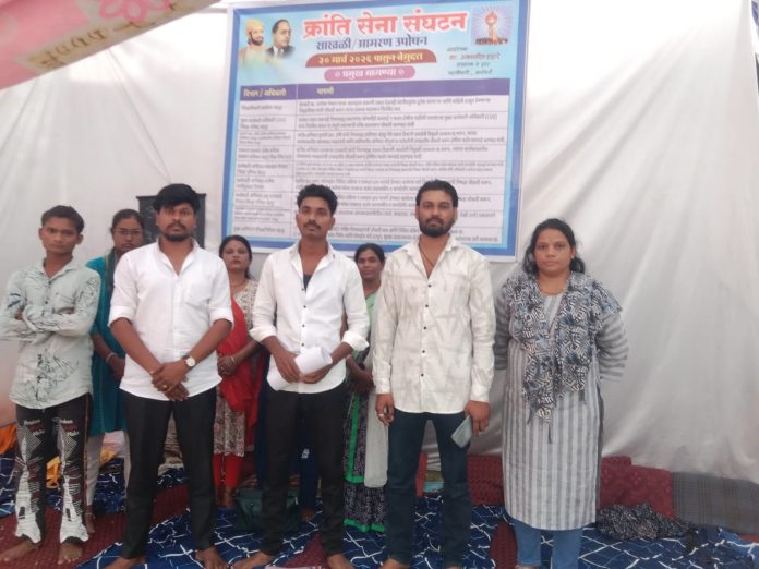 प्रतिनिधीने आंदोलन मंडपाला भेट दिली असता क्रांती सेनाचे संस्थापक अध्यक्ष अश्वजीत रुपचंद शहारे,क्रांतीसेना महाराष्ट्र प्रदेशचे अध्यक्ष भिमराव बंसोड व उपाध्यक्ष सद्दाम शेख आमरण उपोषणाला बसले असल्याचे दिसून आले.