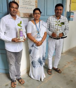 यावेळी सौ.भांडारकर यांनी प्रा.महेश पानसे यांना बेलाचे तर पि.डी.धोटे यांना पारिजातकाचे रोपटे देऊन शिक्षक दिनानिमित्त शुभेच्छा दिल्यात.