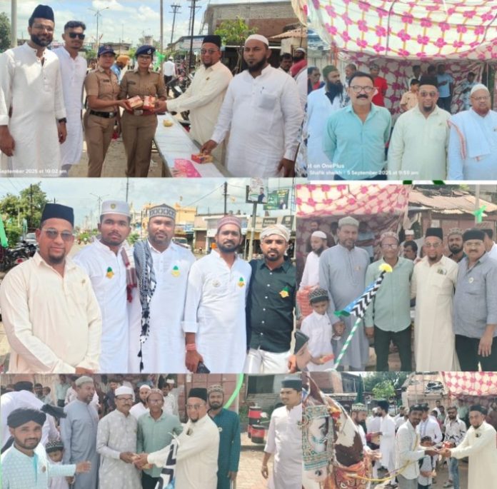याप्रसंगी जामा मस्जिद चौक चिमुर येथील मुस्लिम युवा तसेच सामाजिक कार्यकर्ते यांनी स्वता उपस्थितीत जुलुस मधील सर्व लहान मुला मुलींना,सर्व मुस्लिम बांधवाना,चिमुर येथील सर्व जनतेला व पोलिस बांधवांना ईद ए मिलादुन्नबीच्या शुभेच्छा दिल्या.