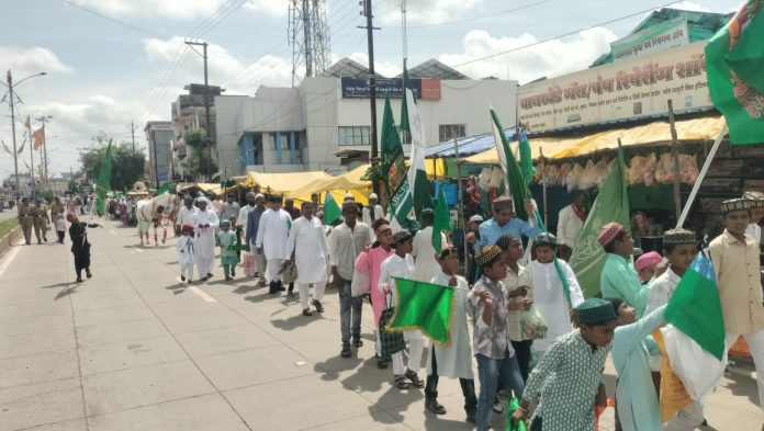 सर्व मुस्लीम बांधव एकत्रीत होऊन ९:३० वाजता संयुक्त जुलूस रॅली आबादी वार्ड, मासळ रोड, मार्गे स्व. अटलबिहारी वाजपेयी चौक मुख्य रस्त्याने हुतात्मा स्मारक नेहरू चौक शहीद, बालाजी रायपूरकर चौक, नेहरू विद्यालय, मस्जिद, मार्केट लाईन मार्गे चावळी चौक, वाल्मीक चौक मार्गे, पंचशील चौक सुन्नी मस्जिद येथे रॅलीचा समारोप करण्यात आला.