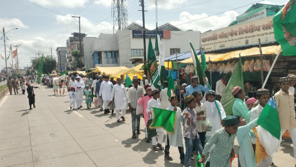 सर्वधर्म समभावाने दर्शन घडवीत ठानेदार दिनेश लबडे यांनी रॅलीतील मुस्लीम बांधवाचे गुलाब पुष्प देवून स्वागत केले. तर रजा फाउंडेशन ने मस्जिद चे इमाम मौलाना तंजीम रजा व ठाणेदार दिनेश लबडे यांचा शाल व हार देवून सत्कार केला.