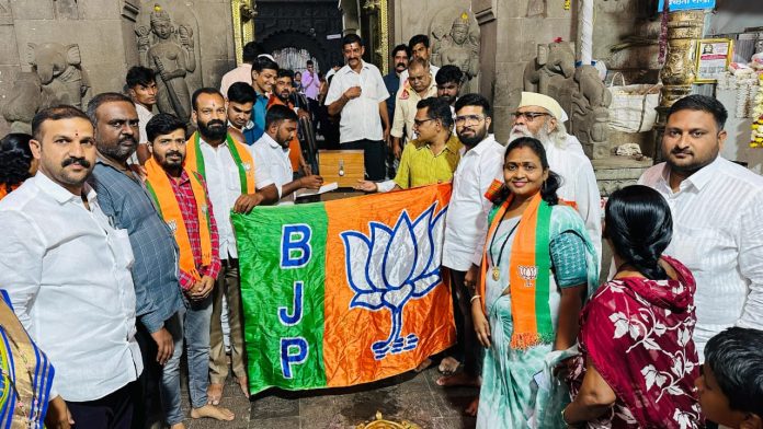 यावेळी शहर संघटक ज्ञानेश्वर बनसोडे, युवा मोर्चा अध्यक्ष वासुदेव तुर्की, महीला मोर्चा अध्यक्ष संगीता पफाळ, आकाश जोशी, चारुदत्त प्रसादे, संकेत वाघमारे, संपतराव बवले, सुजीत काशीद, शंतनू पोफळे, प्रमोद बाफना तसेच भाजपचे पदाधिकारी व कार्यकर्ते उपस्थित होते.