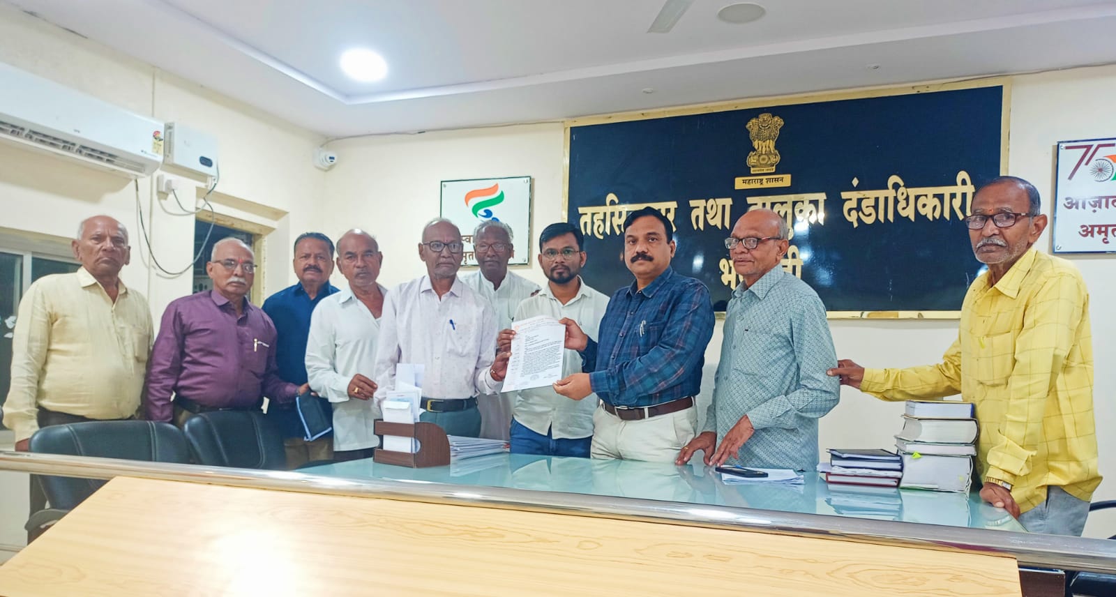 निवेदन देऊन चर्चा करताना प्रवीण चिमुरकर, जिल्हा ग्राहक संरक्षण परिषद, चंद्रपुर तथा सचिव, अखिल भारतीय ग्राहक पंचायत भद्रावती, तसेच अखिल भारतीय ग्राहक पंचायत चे पदाधिकारी बालाजी दांडेकर, वसंत वर्हाटे, वामन नामपल्लीवार, पुरूषोत्तम मत्ते, मोहन मारगोनवार, गुलाब लोणारे, केशव मेश्राम, करूणा मोघे, जयपूरकर, सातपूते इ. ची उपस्थिती होती.