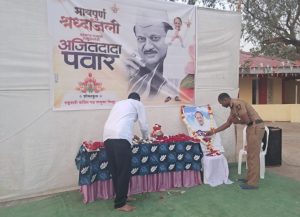 चिमूर :- राज्याचे उपमुख्यमंत्री अजितदादा पवार यांचे अस्थीकलश चिमूर येथे आगमन होऊन हुतात्मा स्मारक येथे सर्व पक्षीय अस्थी कलश चे पूजन करून श्रद्धांजली अर्पण करण्यात आली.