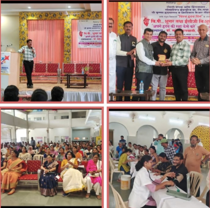 हींगनघाट : विश्व हृदय दिवस पर रोटरी क्लब ओर गीमाटेक्स द्वारा ,मोहता भवन में भव्य निशुल्क स्वास्थ शिबीर का आयोजन किया गया।