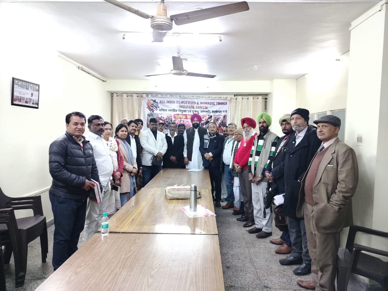 दिल्ली :- अखिल भारतीय विमुक्त जाती, भटक्या जमाती वेलफेअर संघ दिल्ली ( AIDNTWS) नुकतेच दिनांक०५.०१.२०२५ रविवारला कमलादेवी भवन मध्ये (गोलमेज कक्षात ) दीनदयाळ उपाध्याय मार्ग दिल्ली OTI येथे आपले समाजाचे प्रश्न घेऊन लढणारे अखिल भारतीय विमुक्त जाती, भटक्या जमाती वेलफेअर संघ दिल्ली (AIDNT)या संघटनेचे राष्ट्रीय कार्यकारिणीच्या आयोजनात बैठकीचे अध्यक्ष स्थानी रविंद्रकुमार होते. प्रमुख मार्गदर्शक संस्थापक अध्यक्ष जीलेसिंह तर प्रमोद कुरील, फौजासिंह आमदार पंजाब, बालक राम सानंसी, अमरसिंह भेडकुट,Dr. राणू छारी,सह देशातील अठरा राज्याचे प्रदेश अध्यक्ष आणि प्रतिनिधींचे उपस्थितीत वार्षिक बैठक संपन्न झाले.