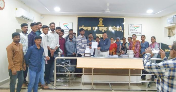 भद्रावती :- युवा कार्य प्रशिक्षण योजना प्रशिक्षणार्थ्यांनी तहसीलदार भद्रावती आणि गटविकास अधिकारी यांच्या मार्फत मुख्यमंत्र्यांना निवेदन दिले.