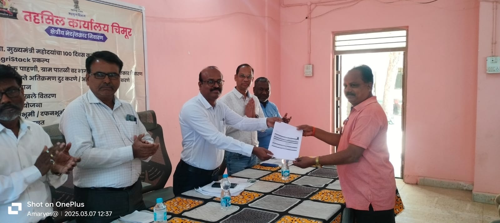 तहसीलदार श्रिधर राजमाने यांनी शासन आदेश अनुषंगाने,चिमूर मंडळ कार्यक्षेत्रा मधील शेतकरी वर्ग यांना आमंत्रित केले होते.