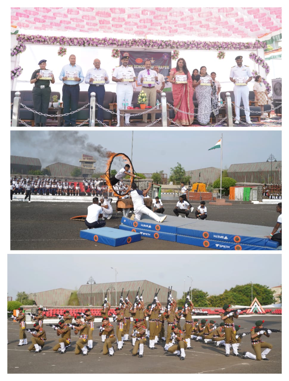 मार्च पास्ट, कवायती, कराटे, एरोबिक्स आणि जिम्नॅस्टिक्सच्या सादरीकरणातून कॅडेट्सची शिस्तबद्धता आणि शारीरिक तयारी अधोरेखित झाली. फायर डाईव्ह या थरारक सादरीकरणाने कार्यक्रमाचा उत्कर्ष साधला आणि उपस्थितांकडून टाळ्यांचा कडकडाट मिळवला.