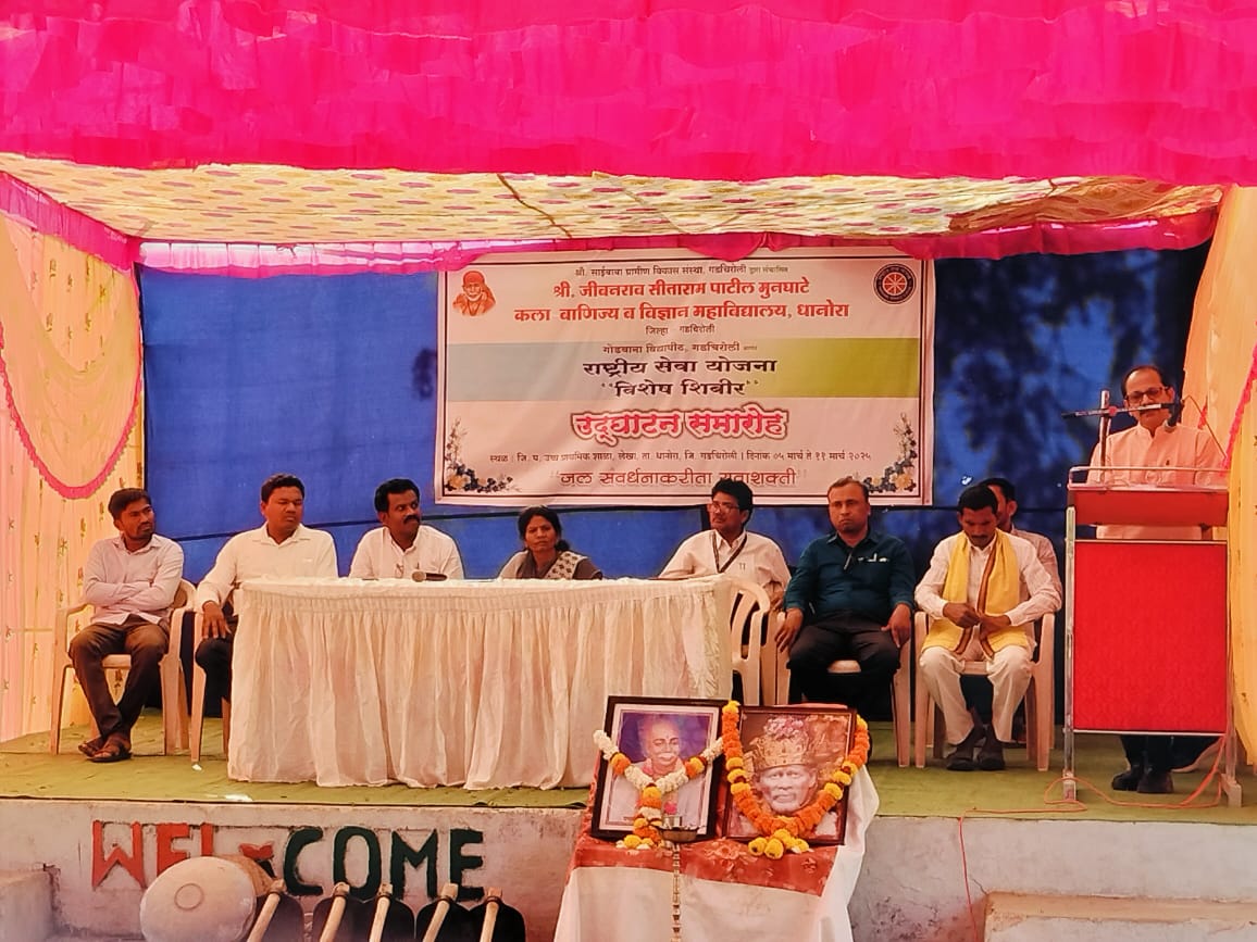 श्री साईबाबा ग्रामीण विकास संस्था गडचिरोली द्वारा संचालित श्री जीवनराव सिताराम पाटील मुनघाटे कला वाणिज्य व विज्ञान महाविद्यालय धानोरा यांच्या वतीने जल संवर्धनकरिता युवशक्तीचे लेखा येथे दिनांक सहा मार्च रोजी राष्ट्रीय सेवा योजना शिबीर आयोजित करण्यात आले.