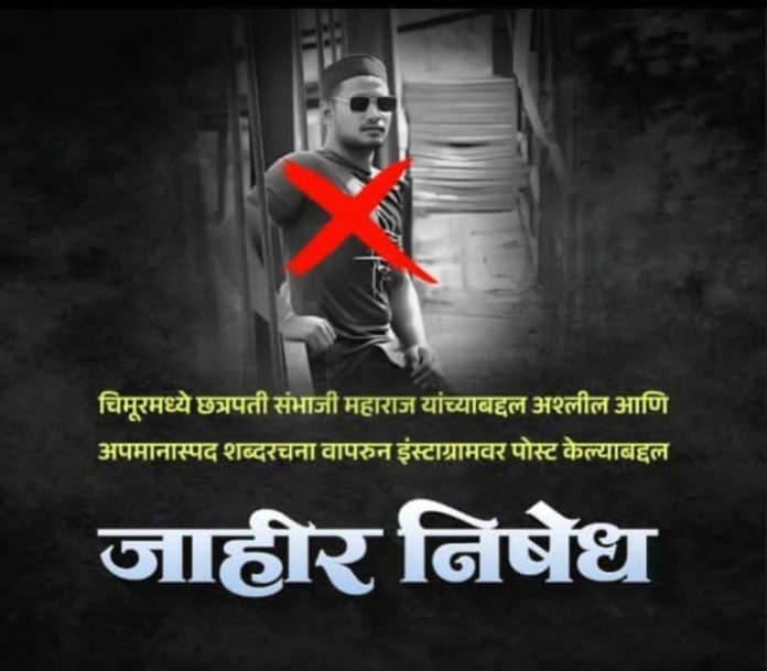 Home Maharashtra छत्रपती संभाजी महाराजांबद्दल आक्षेप टिपणी करणारा पोलिसांच्या कैदीत… – चिमूर शहरातील...