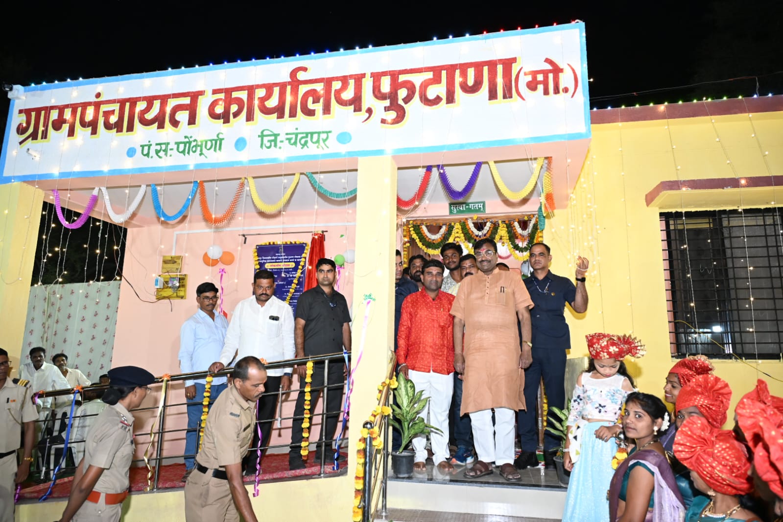 चंद्रपूर :- पोंभूर्णा तालुक्यात फुटाणा येथे नव्याने बांधलेल्या ग्रामपंचायत भवनाचे लोकार्पण करण्यात आले. गावाच्या सर्वांगीण विकासाच्या दिशेने टाकलेले हे एक महत्त्वपूर्ण पाऊल आहे. या ग्रामपंचायतीच्या माध्यमातून गावातील ज्येष्ठ नागरिक आणि मातृसमान महिलांची मन:पूर्वक सेवा होईल, तसेच सुंदर व सुसज्ज कार्यालयातून उत्कृष्ट जनसेवा घडेल, असा विश्वास राज्याचे माजी वने, सांस्कृतिक कार्य व मत्स्यव्यवसाय मंत्री आमदार श्री. सुधीर मुनगंटीवार यांनी व्यक्त केला.