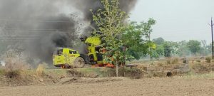 शाँर्टसर्कीटमुळे उसेगांव जवळील स्मशानभुमी जवळ पोकलँडला आग…