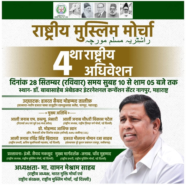 28 सितम्बर को,”राष्ट्रीय मुस्लिम मोर्चा का,4 था राष्ट्रीय अधिवेशन नागपूर में।