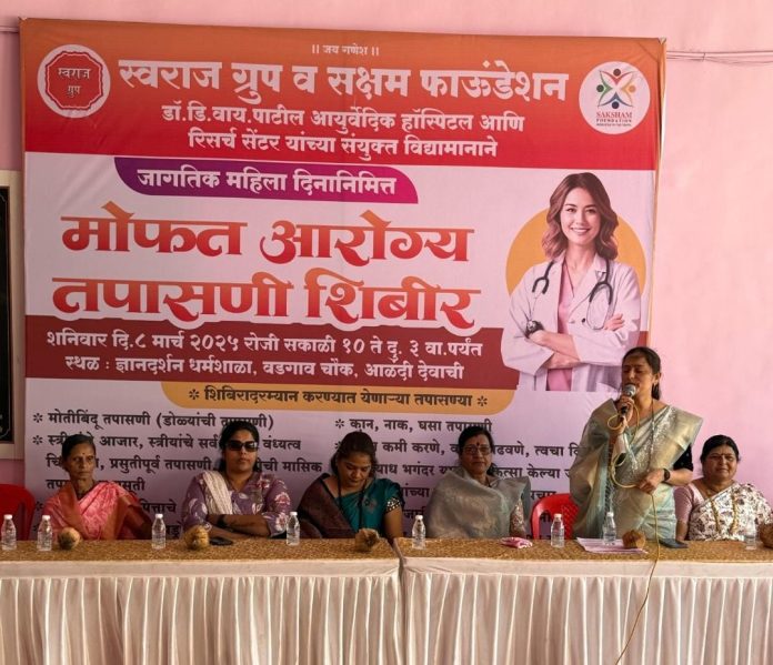 आळंदी :- जागतिक महिला दिनानिमित्त शनिवार (ता.८) रोजी स्वराज ग्रुप व सक्षम ग्रुप यांच्यामाध्यमातून आळंदीत महिलांसाठी विशेष आरोग्य तपासणी शिबिर पार पडले.
