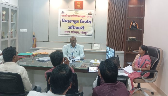 त्यामुळे वेळेत येऊ अर्ज सादर करावे,या ऑनलाइन नामांकन प्रणालीमुळे निवडणुकीतील पारदर्शकता,अचूकता आणि तत्काळ माहिती उपलब्धता वाढणार असून चिमूर नगर परिषद निवडणुकीत ही प्रक्रिया अधिक कार्यक्षम होण्याची अपेक्षा व्यक्त करण्यात आली.