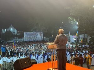 पुणे आणि पिंपरी-चिंचवड महानगरपालिका निवडणुकीच्या प्रचारार्थ पिंपरी येथील डॉ. बाबासाहेब आंबेडकर स्मारकाजवळ आयोजित भव्य जाहीर सभेत ते बोलत होते.