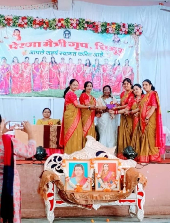 जागतिक महिला दिन निमित्त प्रेरणा मैत्री ग्रुपच्या वतीने दिनांक ८ मार्च ला महिला महोत्सव कार्यक्रमाचे उद्घाटन संध्या चंदनखेडे शिक्षिका यांच्या हस्ते क्रांतीज्योती सावित्रीबाई फुले व राजमाता जिजाऊ यांच्या प्रतिमेस माल्यार्पण करून केले.