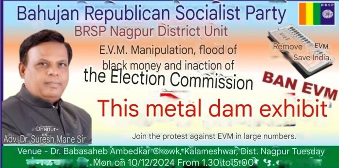 Since elections conducted through EVM machines are not held in a transparent, fair, credible, undoubtedly, independent and open environment, “Removal of EVM machines, Bahujan Republican Socialist Party will hold a dharna protest today against it,” at Dr. Babasaheb Ambedkar Chowk near Kalmeshwar Railway Station.