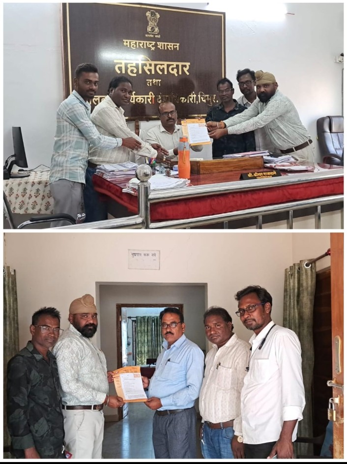 तहसीलदार श्रिधर राजमाने आणि वनपरिक्षेत्राधिकारी किशोर देऊळकर यांना निवेदन देताना महाराष्ट्र राज्य पत्रकार संघाचे चिमूर तालुका अध्यक्ष केवलसिंग जुनी,तालुका संघटक विलास मोहिनकर,तालुका उपाध्यक्ष सुनील हिंगणकर,तालुका सचिव सुशांत इंदूरकर,सदस्य शार्दुल पचारे उपस्थित होते.