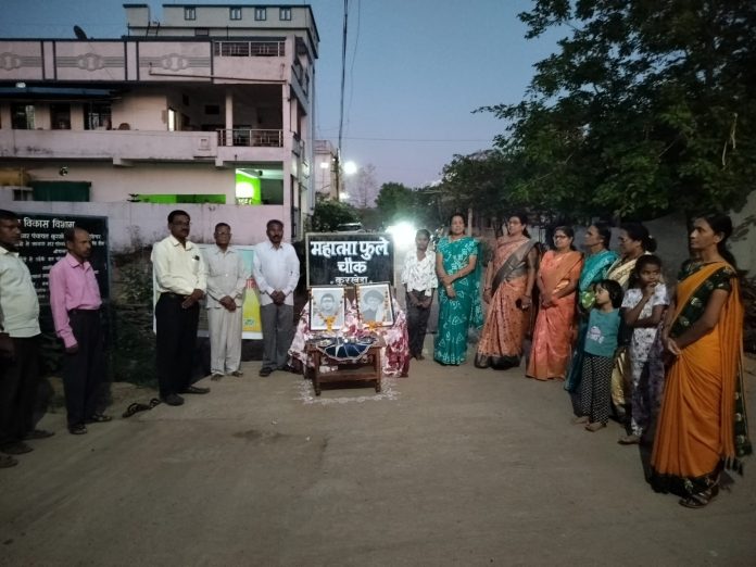 सर्वप्रथम येथील जेष्ठ नागरिक श्री.आसारामजी माकडे आणि श्री.उद्धवरावजी राऊत यांचे हस्ते महात्मा जोतिराव फुले आणि सावित्रीमाई फुले यांच्या प्रतिमांना हार अर्पण करण्यात आले व तदनंतर द्वीप प्रजनन करून कार्यक्रमाची सुरुवात करण्यात आली.