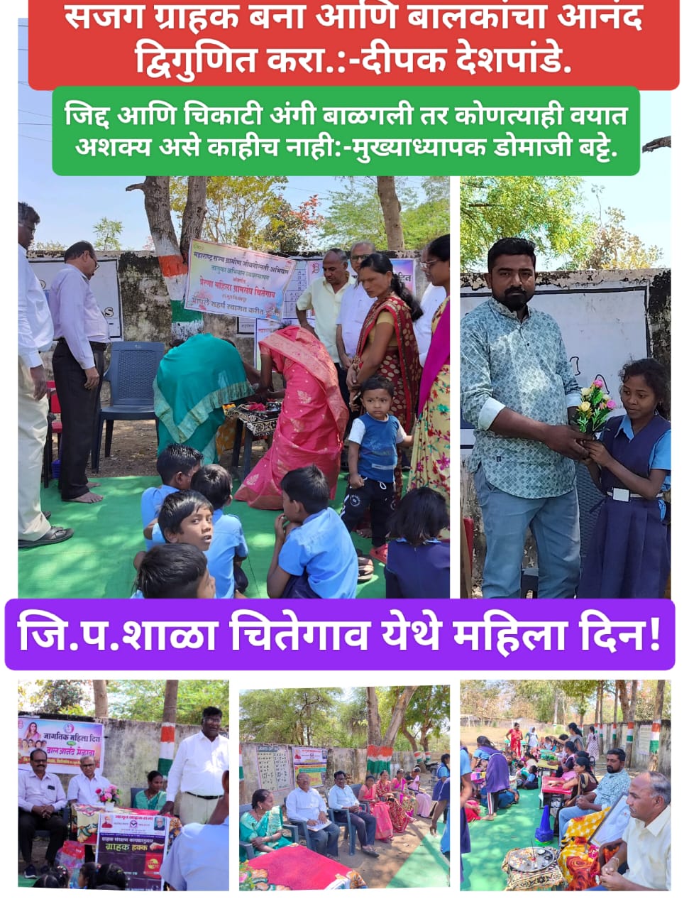 जि.प.शाळा चितेगाव येथे नुकताच जागतिक महिला दिनाच्या निमित्ताने विद्यार्थी व पालकांच्या विविध स्पर्धांचे व आनंद मेळाव्याचे आयोजन करण्यात आले होते.