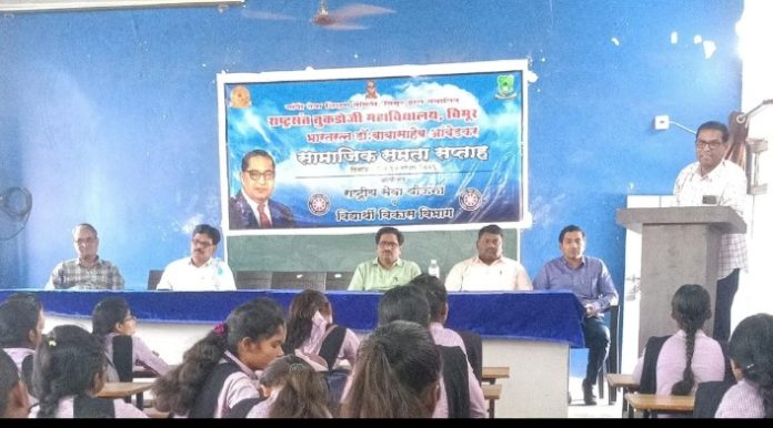 स्थानिक गांधी सेवा शिक्षण समिती द्वारा संचालित राष्ट्रसंत तुकडोजी महाविदयालयात दिनांक०८ ते१४ एप्रील पर्यंत राष्ट्रीय सेवा योजना व विद्याथी विकास विभागाने भारतरत्न डॉ.बाबासाहेब आंबेडकर सामाजिक समता सप्ताहचे आयोजन करण्यात आले.