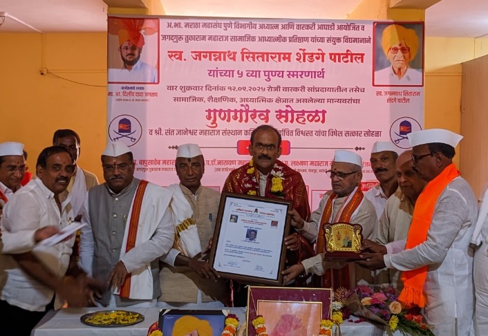 आळंदी : “श्री ज्ञानेश्वर शिक्षण संस्थेचे सचिव अजित सुरेश वडगांवकर यांचे कार्य समाजासाठी अत्यंत प्रेरणादायी आहे. गेली २५ वर्षे त्यांनी शिक्षण, कला, क्रीडा व सामाजिक क्षेत्रात केलेले योगदान मराठा समाजासाठी अभिमानास्पद आहे,” असे प्रतिपादन ह.भ.प.बापूसाहेब महाराज मोरे यांनी केले.
