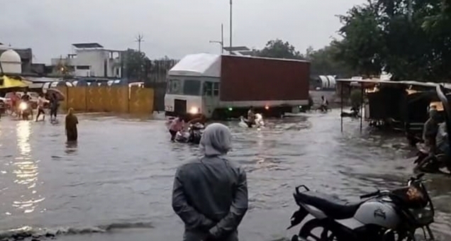 लगातार 4 से ५ घंटे हुई तेज बारिश से जन जीवन अस्त – व्यस्त हो गया। सरकारी दवाखाना चौक पर पानी लबालब भर गया,छोटे बड़े वाहनों के चक्के आधे बारिश में डूबे हुए नज़र आए। पानी का बहाव इतना तेज था ,की छोटे बड़े वाहनों के आवागमन की गति पर गति रोधक लग गया था।
