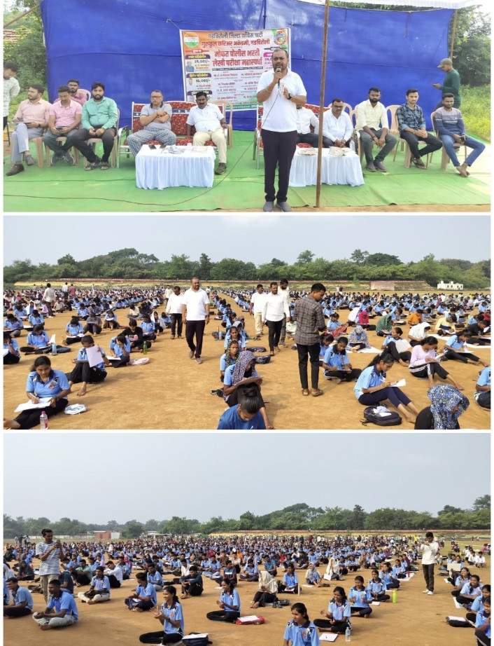 गडचिरोली जिल्हा काँग्रेस कमिटी आणि गुरुकुल अकॅडमी गडचिरोली यांच्या संयुक्त विद्यमाने मोफत पोलीस भरती लेखी परीक्षा महास्पर्धेचे आयोजन दिनांक 12 ऑक्टोबर 2025 रोजी जिल्हा क्रीडांगण, गडचिरोली येथे करण्यात आले.