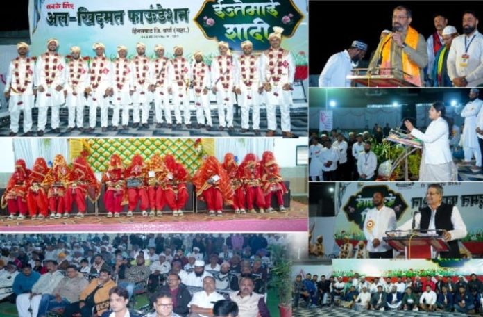 हिंगणघाट :- विश्व रत्न डॉ.बाबा साहेब आंबेडकर चौक परिसर स्थित जुना सरकारी हॉस्पिटल ग्राउंड में अल खिदमत फाउंडेशन द्वारा ईज्तेमाई शादी (सामूहिक विवाह )का गत दी.11जानेवारी 2026 शाम 6:बजे शानदार आयोजन किया गया। जामा मस्जिद के इमाम साहब ने सभी दूल्हा-दुल्हनों का निकाह पढ़ाया,ओर उनकी नई जिंदगी की शुरुवात की तमाम खुशियों के लिए खैरोबरकत की दुआ मांगी।