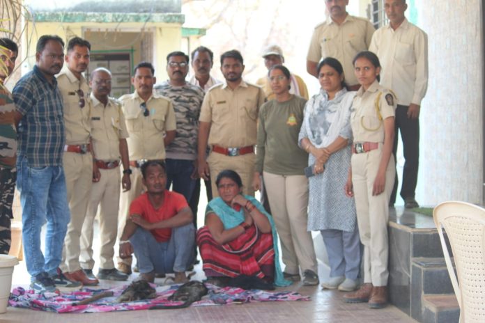 ही कारवाई बुधवारी (दि.12) पळसगाव वनपरीक्षेत्रात करण्यात आली.या प्रकरणी श्री. कालू इंदल राठोड (35), व त्याची पत्नी सौ.बबिता गजानन सोलकी वय (28) दोन्ही रा.अकोली,ता.सेलू,जि.वर्धा असे अटक केलेल्या आरोपींची नावे असल्याचे सांगण्यात आले.