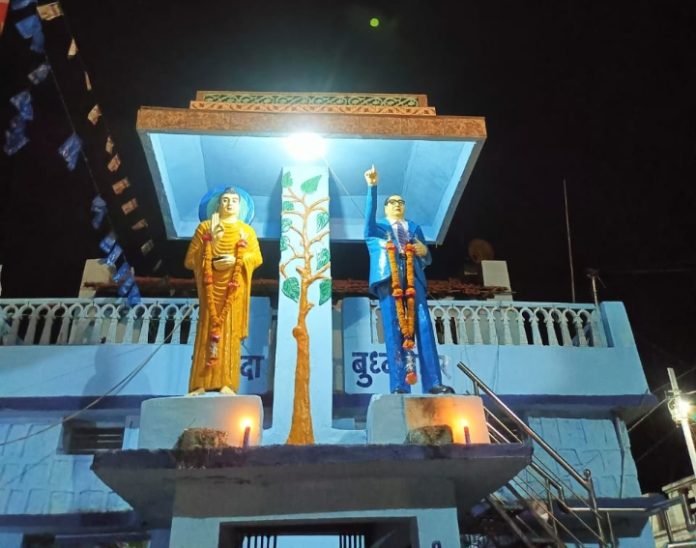 विश्वरत्न महामानव डॉ.बाबासाहेब आंबेडकर,तथागत भगवान गौतम बुद्ध यांच्या प्रतिमेंला मान्यवरांच्या हस्ते पुष्पहार अर्पण करण्यात आले.