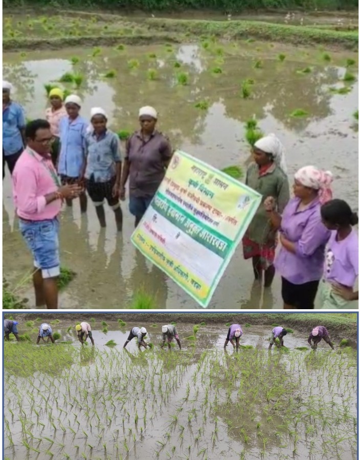 आज दिनांक 13 ऑगस्ट 2025 ला गडचिरोली जिल्हातंर्गत कुरखेडा तालुक्यातील मौजा सोनसरी येथे भात पिकाची महिलांची शेती शाळा प्रत्यक्ष कृतीतून घेण्यात आली.