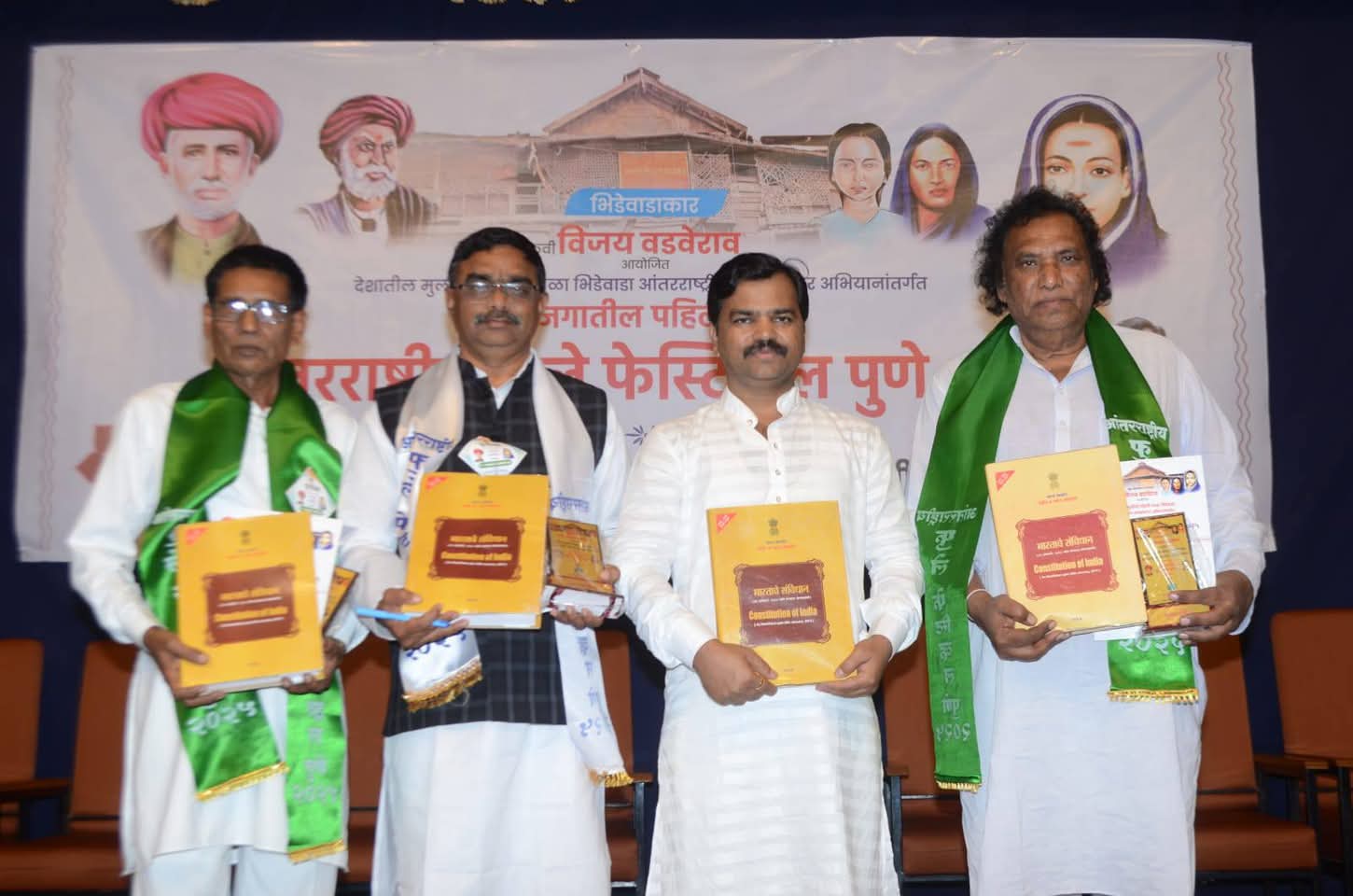 पुणे : भिडेवाडाकार कवी विजय वडवेराव यांच्या संकल्पनेतून देशातील मुलींची पहिली शाळा भिडेवाडा आंतरराष्ट्रीय काव्यजागर अभियानांतर्गत पहिल्या आंतरराष्ट्रीय फुले फेस्टिव्हलचे आयोजन करण्यात आला. महाराष्ट्रासह देशविदेशातून ६०० कवी, साहित्यिक, विचारवंत, कलाकार यामध्ये सहभागी झाले. चार दिवसांच्या या फेस्टिवलमध्ये जवळपास १५०० रसिकांनी उपस्थिती लावली. सहभागी ६०० कवींना भारतीय संविधानाची प्रत, सन्मानचिन्ह, फुलेप्रेमी लेखणी व मानपत्र देऊन गौरवण्यात आले. संविधानाबाबत जागृती, प्रचार करण्याच्या उद्देशाने संविधान जागर अभियान राबविण्यात आले.