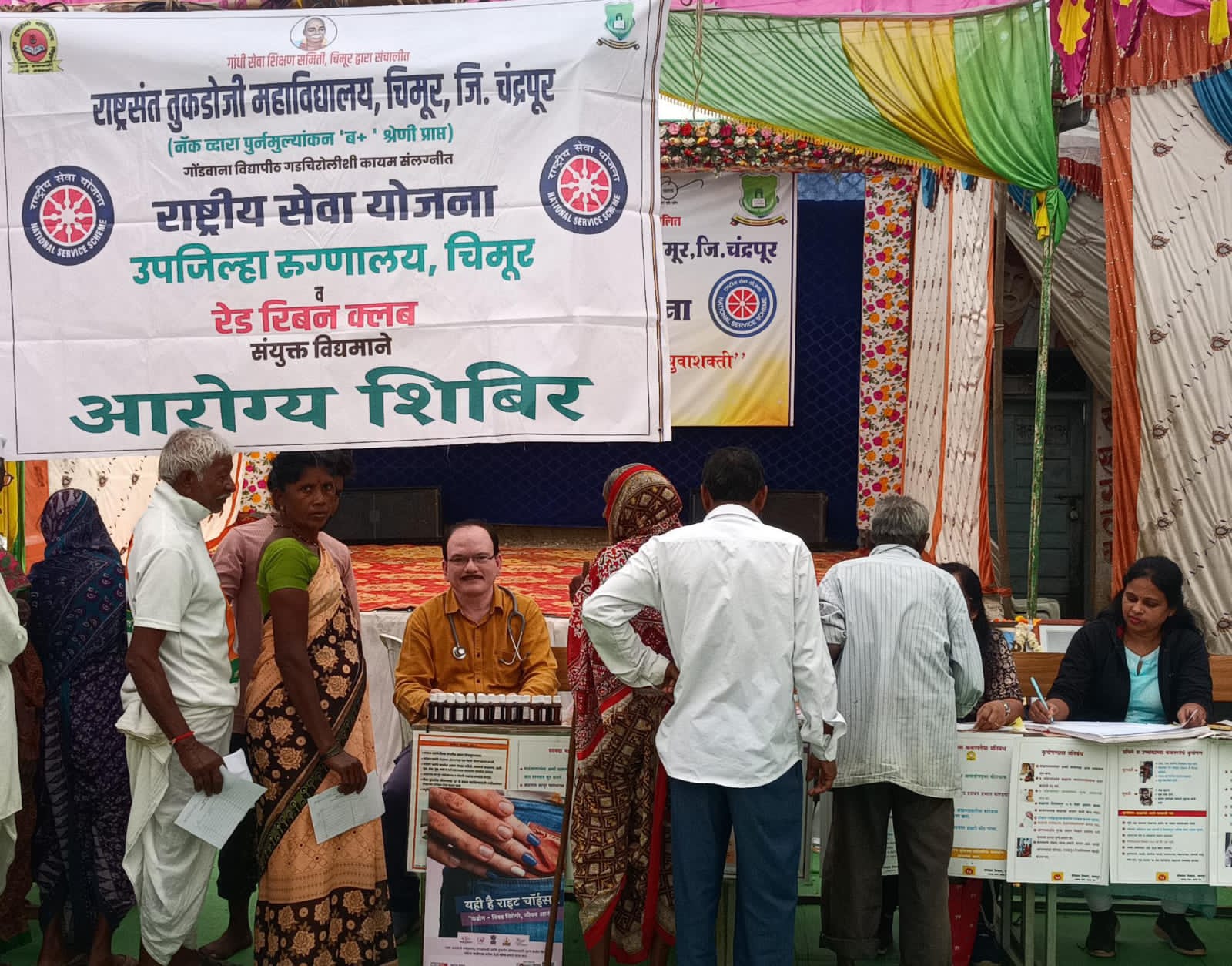 या निमिताने विविध आजारांचे कारणे जाणून घेतले. तसेच चुकीच्या आहार पध्दतीमुळे आरोग्यावर कसे परिणाम होतात सप्रमाण सांगितले.या कार्यक्रमाच्या आयोजनासाठी प्राचार्य डॉ. अश्विन चंदेल यांचे मार्गदर्शन लाभले. कार्यक्रमाच्या यशस्वीतेसाठी राष्ट्रीय सेवा योजना कार्यक्रम आधिकारी तथा विभागीय समन्वयक डॉ.प्रफुल राजुरवाडे,प्रा.डॉ.कत्रोजवार, प्रा.गजानन चव्हाण,प्रा.रिना भोयर यांनी परिश्रम घेतले. आरोग्य तपासणी शिबिरासाठी रासेयो स्वयंसेवकानी उदंड प्रतिसाद दिला.