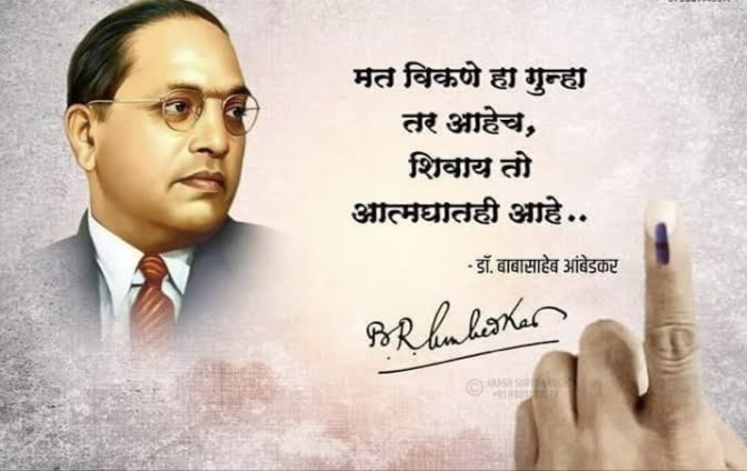 निवडणूकांमध्ये मताचा बाजार होवू शकते व जनता विरोधी,भांडवलदार तथा मनुवादी विचारसरणीचे राजकारणी प्रलोभने दाखवून रुपयांच्या बलावर मतदारांचे मत विकत घेवु शकतात आणि मतदार प्रलोभनाला बळी पडून मत विकु शकतात याची जाणीव,भारत निर्माता डॉ.बाबासाहेब आंबेडकर यांना होती.
