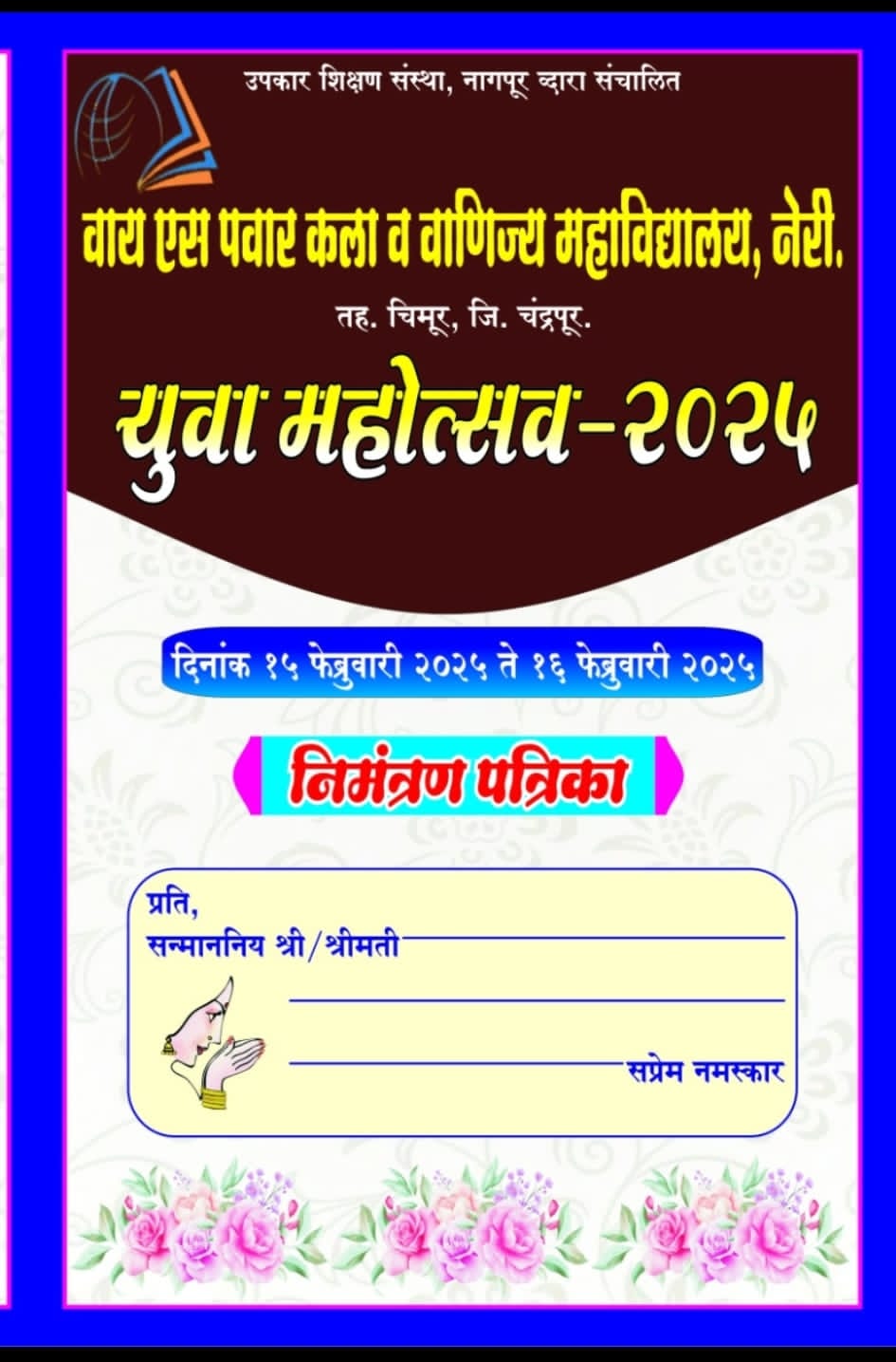 चिमूर तालुकातंर्गत मौजा नेरी येथील वाय एस पवार कला वाणिज्य महाविद्यालयात दोन दिवशीय युवा सांस्कृतिक महोत्सवाचे आयोजन करण्यात आला आहे.